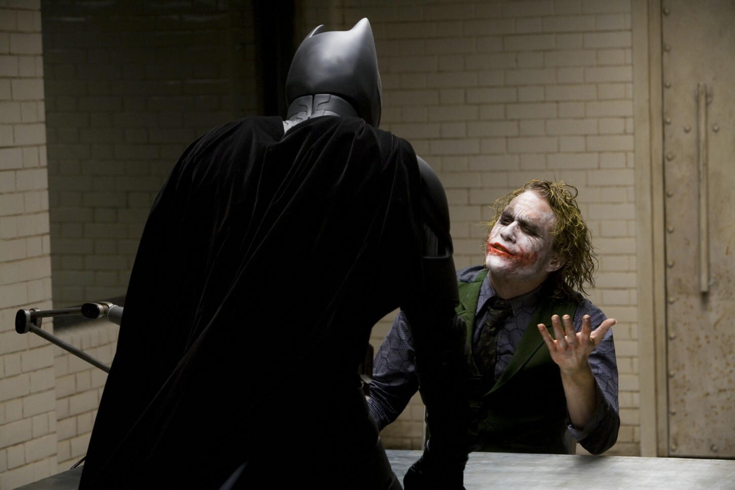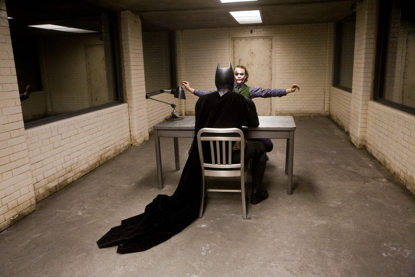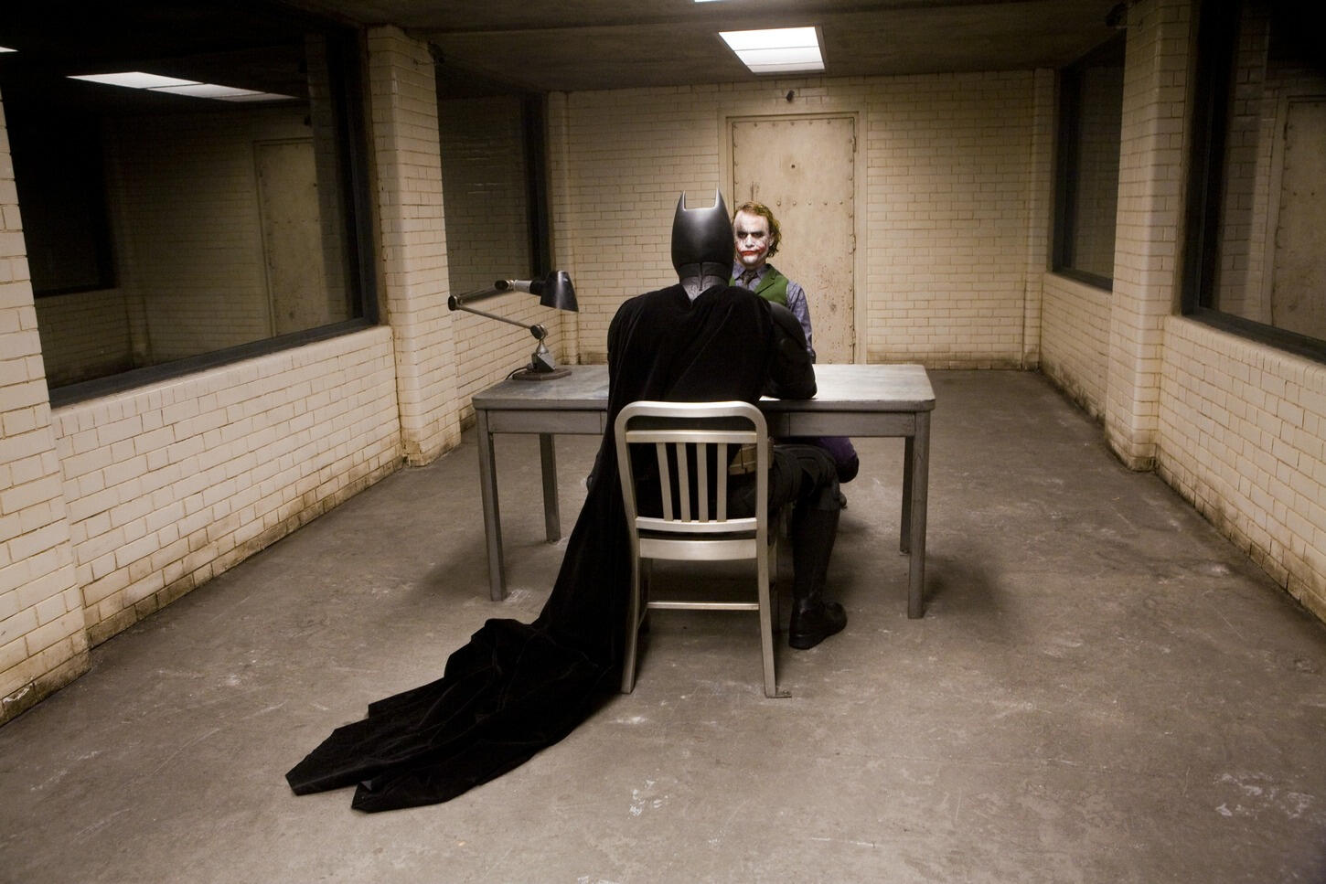 The “Dark Knight” director gives a deep dissection of his single favorite scene in the movie, the gripping interrogation sequence, which (with no special effects and only bare-bones lighting) would become “the fulcrum on which the whole movie turns.”I asked the London native to pick one scene in the film that he would circle as the essential moment in the movie, either in its service to the overall story or the film’s texture. He answered quickly.Nolan: To be honest, it’s pretty easy for me. The scene that is so important and so central to me is the interrogation scene between Batman and the Joker in the film. When we were writing the script, that was always one of the central set pieces that we wanted to crack.GB: At what point in the production schedule did you shoot it?Nolan: On the set, we shot it fairly early on. It was actually one of the first things that Heath had to do as the Joker. He told me he was actually pretty excited to tear off a big chunk early on, really get one of the Joker’s key scenes up in the first three weeks of a seven-month shoot. He and I both liked the idea of just diving in, as did Christian Bale. We had rehearsed the scene a tiny bit. We had just ripped through it a couple of times in pre-production just to get some slight feel of how it was going to work. Neither of them wanted to go too far with it in rehearsal. They had to rehearse some of the fight choreography, but even with that, we tried to keep it loose and improvisational. They wanted to save it all. We were all pretty excited to get on with a big chunk of dialogue and this big intense scene between these two iconic characters. It was quite bizarre to see Batman across the table across from the Joker [laughs]. I’m glad you asked this. You know, I could actually talk about this scene for hours.
